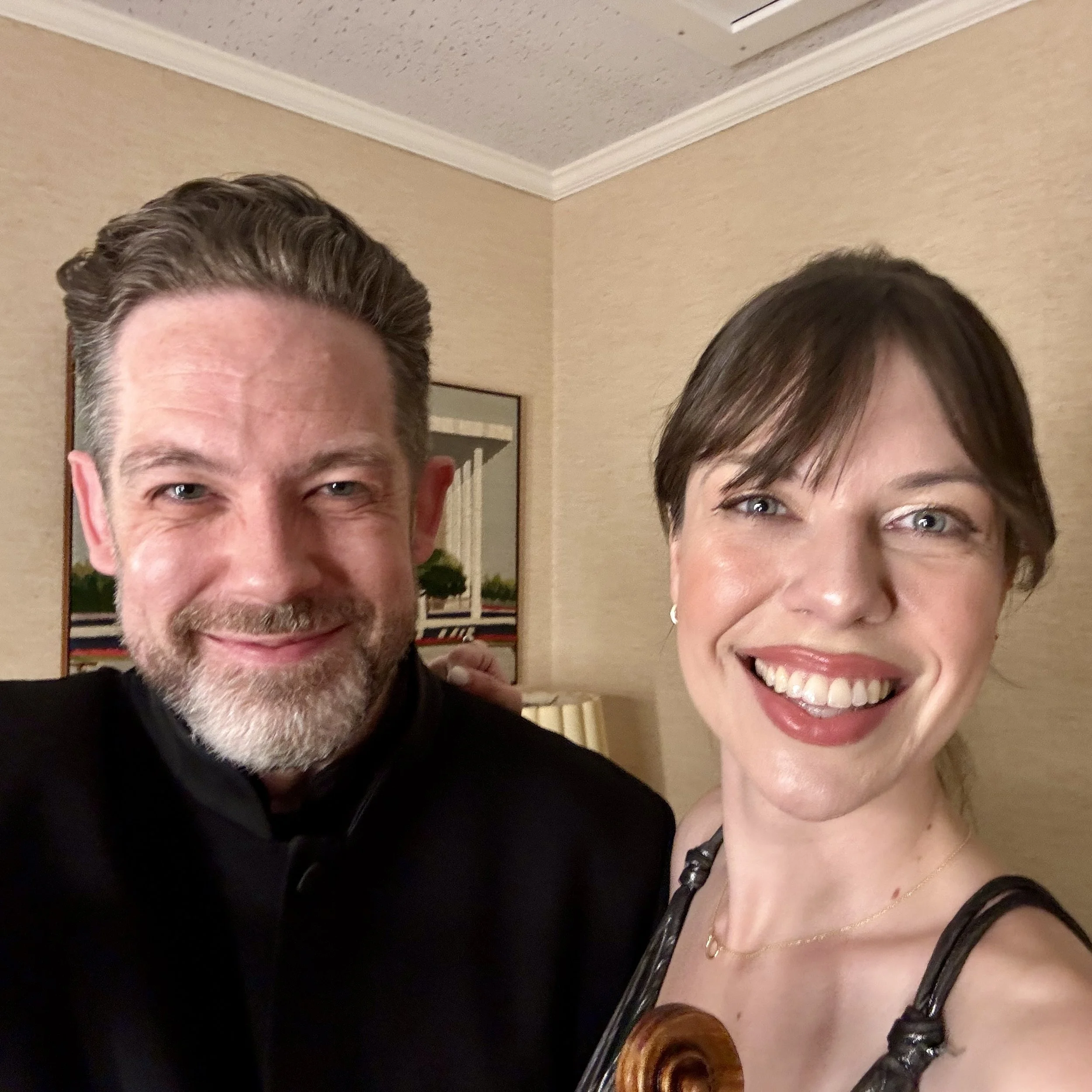 With violinist Stefan Jackiw after performing Mozart’s Violin Concerto No. 5 with the Pasadena Symphony (Mar 2025)